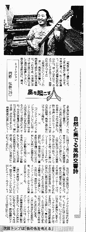 Хироки Окано- яркий представитель японской этно-эмбиент-техно сцены: композитор, певец, мультиинструменталист, играющий на флейте, бузуки, синтезаторе, перкуссии. Он выступает и записывается и как сольный исполнитель и с различными коллективами (The Wind Travelin' Band, Leela и др.), из последних проектов - Tenkoo Orchestra. Много гастролирует , участвует в различных фестивалях.